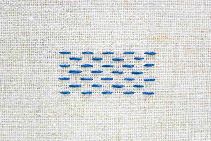 در این دوخت، ابتدا سر نخ را از زیر پارچه بیرون بیاورید. یادتان باشد که انتهای دیگر نخ را گره زده باشید. اکنون حدود نیم سانتیمتر (یا بیشتر، بهدلخواه) بهسمت راست، نخ را وارد پارچه کنید. سپس به همان اندازه از زیر پارچه، سوزن را جلوتر ببرید و از پارچه بیرون آورید. این بار بهجای اینکه از سمت راست، سوزن را داخل پارچه فروببرید، به چپ برگردید و سوزن را از مقابل کوک قبلی (حفرۀ مقابل آن) به زیر پارچه رد کنید. این روش دوخت را ادامه دهید تا ردیفی از دوختتان آماده شود. پس از پایان دوخت، وقتی به زیر پارچه نگاه کنید، میبینید که کار، بسیار تمیز و عالی است.